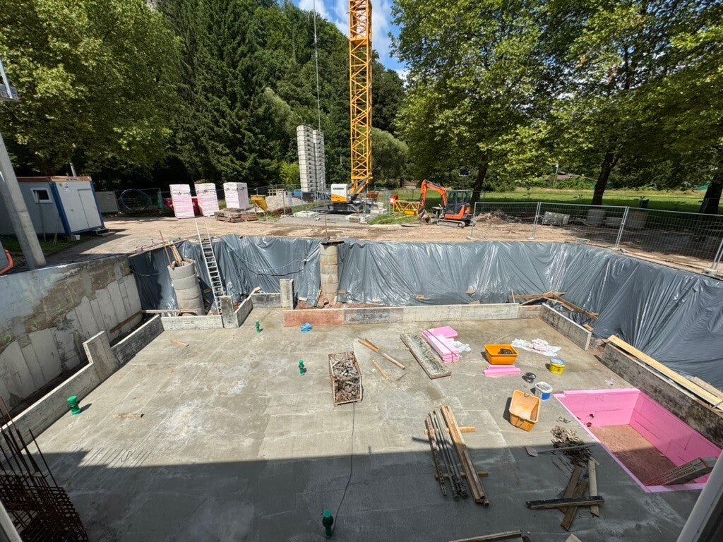 Deutlich sichtbar sind die Veränderungen im Außenbereich: Das große alte Becken ist inzwischen einem tiefen Baugraben gewichen, der künftig den Platz für ein neues, modernes Außenbecken mit Bodendüsen, großzügigen Liegeflächen und naturnaher Gestaltung bietet. Eine zentrale Neuerung ist die technische Trennung von Innen- und Außenbecken. „Früher mussten wir bei Gewitter den gesamten Badebereich schließen“, erläutert Herrmann. „Mit der Trennung können wir die Sicherheit unserer Gäste verbessern und gleichzeitig Energie effizienter nutzen.“