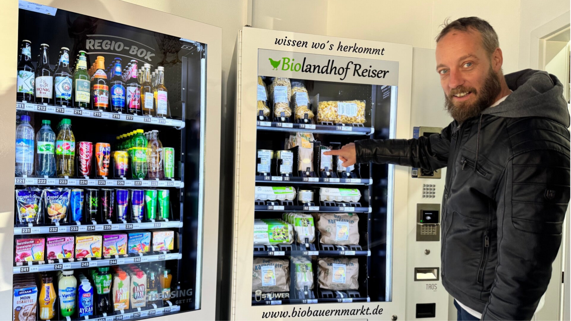 Besonders wichtig ist ihm die Zusammenarbeit mit regionalen Produzenten. Neben dem Biolandhof Reisser kommen Honig und andere Köstlichkeiten aus der eigenen Imkerei, Kaffee von der Rösterei Herzog, Biokäse vom Leimenäckerhof, Schinken vom Schlotterhof und Wurstwaren von M. Lust aus Michelbach ins Sortiment. So sollen lokale Anbieter unterstützt und gleichzeitig frische, hochwertige Produkte für die Kundschaft garantiert werden. Die Selbstbedienungsstationen werden mehrmals täglich befüllt, gekühlte Lebensmittel überwacht, und alle Anforderungen des Lebensmittelrechts werden streng eingehalten.